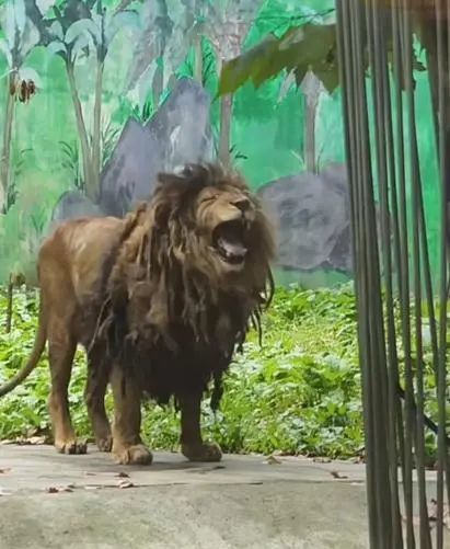 此外,該工作人員介紹,這頭非洲獅名叫“周年”,已經(jīng)8歲多了,于2017年底引進動物園,平常性格兇猛活潑,不太親近人。