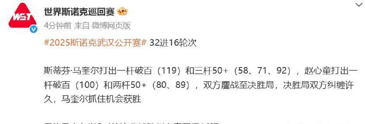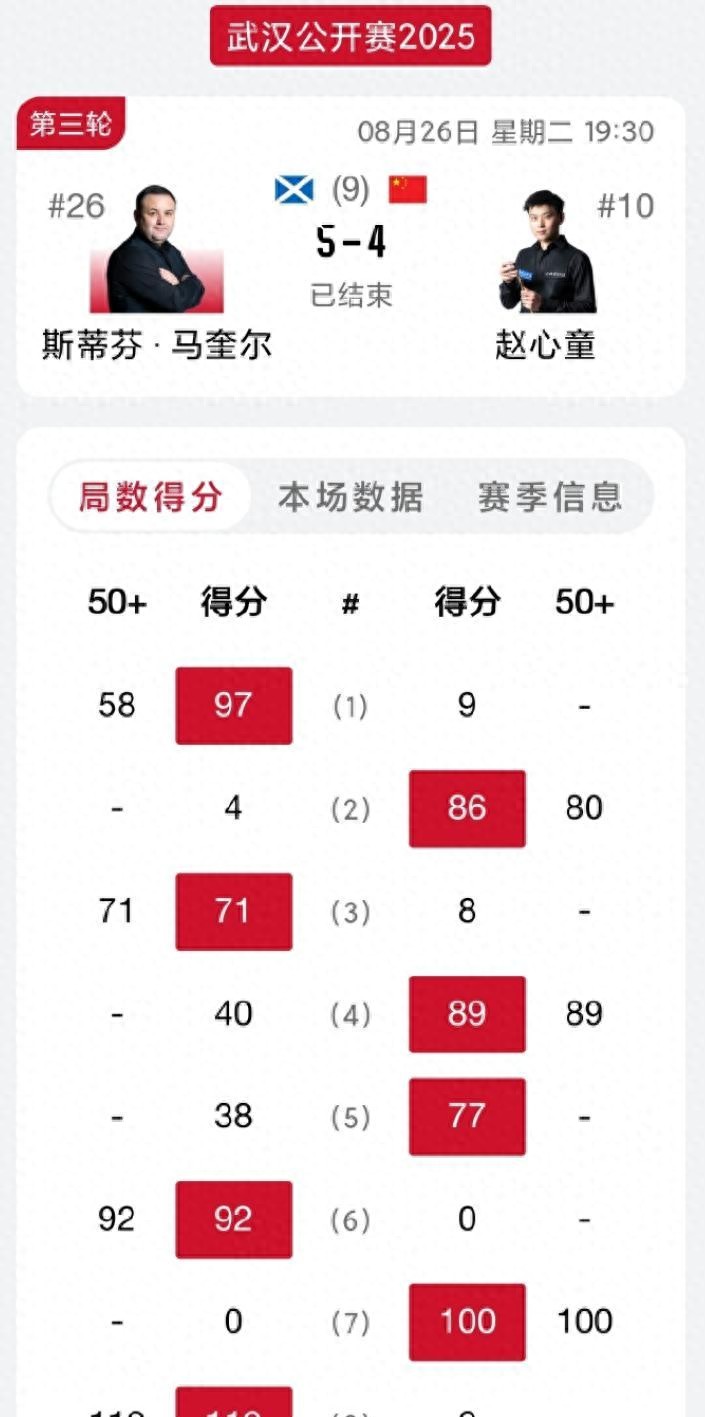 武漢公開(kāi)賽這舞臺(tái)對(duì)趙心童格外特殊,今年才第一次亮相。之前禁賽,別說(shuō)打排名賽了,在家門口連呼吸的機(jī)會(huì)都沒(méi)有。這回來(lái),頭兩輪還算順——博伊科、史蒂文斯,這兩個(gè)都不算堅(jiān)硬,那種“主場(chǎng)氣息”有點(diǎn)推著他往前。比分也都是5-3,趙心童靠準(zhǔn)、靠手感、靠那桿89分,慢慢熱起來(lái)了,能看到那股急切在冒頭。
