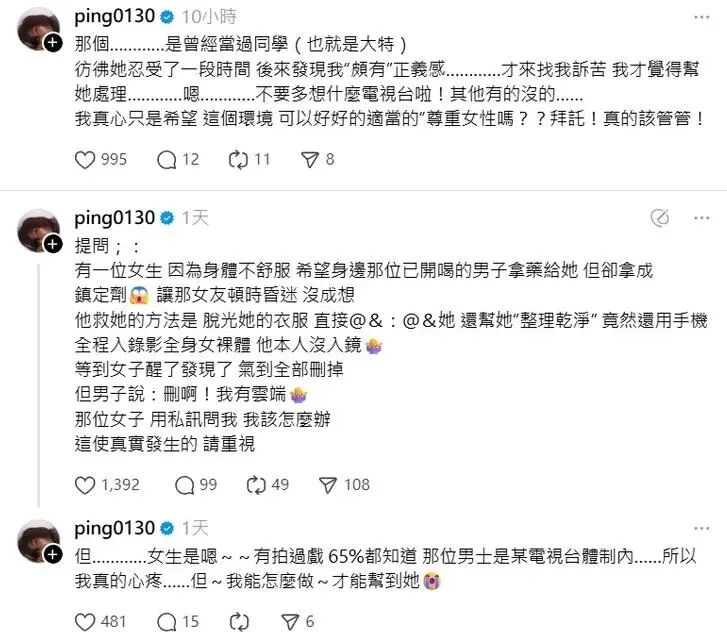據(jù)江祖平此前轉(zhuǎn)述,這名女性朋友某次因身體不適,請(qǐng)?jiān)趫?chǎng)已經(jīng)喝酒的男子幫忙拿藥,對(duì)方疑似給她鎮(zhèn)定劑,她當(dāng)場(chǎng)失去意識(shí),對(duì)方趁她昏迷時(shí)脫光對(duì)方衣物性侵,還將證據(jù)“整理干凈”,甚至用手機(jī)錄下女子全身赤裸畫面,本人并未入鏡。等到女子清醒后,得知發(fā)生什么事后,氣得立刻刪除手機(jī)里的不雅影片,但男子卻冷笑回應(yīng):“刪啊!我有云端。”這句話讓她備受打擊。