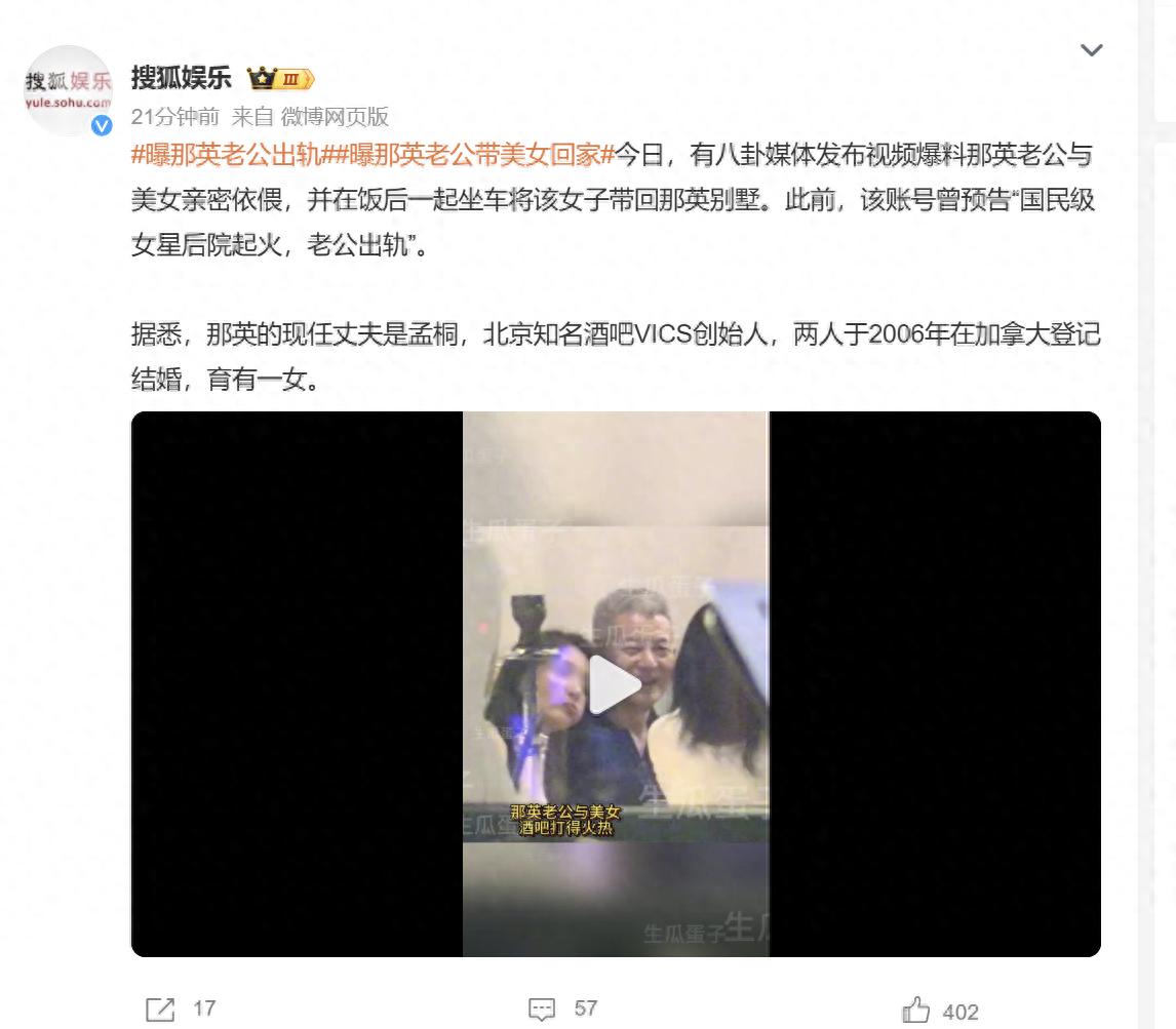 9月10日,有八卦媒體爆料稱那英的老公孟桐疑似出軌,消息傳出后迅速引起了網(wǎng)友們的熱議。