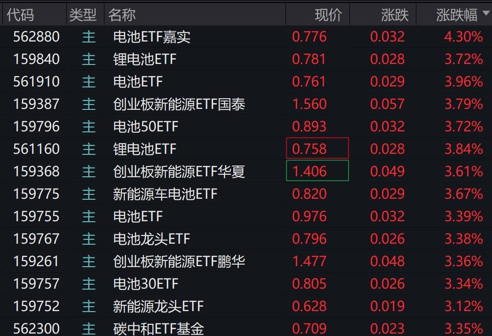 受盤面影響,多只新能源、電池相關ETF漲超3%。