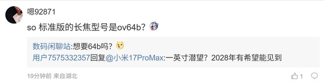 后續有用戶在評論區詢問:“so 標準版的長焦型號是 OV64B?[二哈]”,博主回復道:“想要 64B 嗎?[狗頭斜眼]”;另一名用戶則詢問道:“聽說 X300U 主攝還是 LYT828 [煩]”,博主則回復道:“假的”。