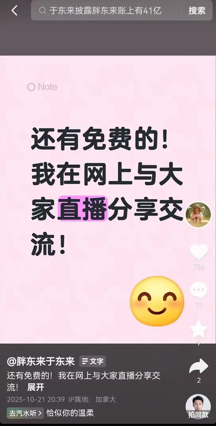 于東來稱:“還會有免費的,我在網(wǎng)上與大家直播分享交流。”