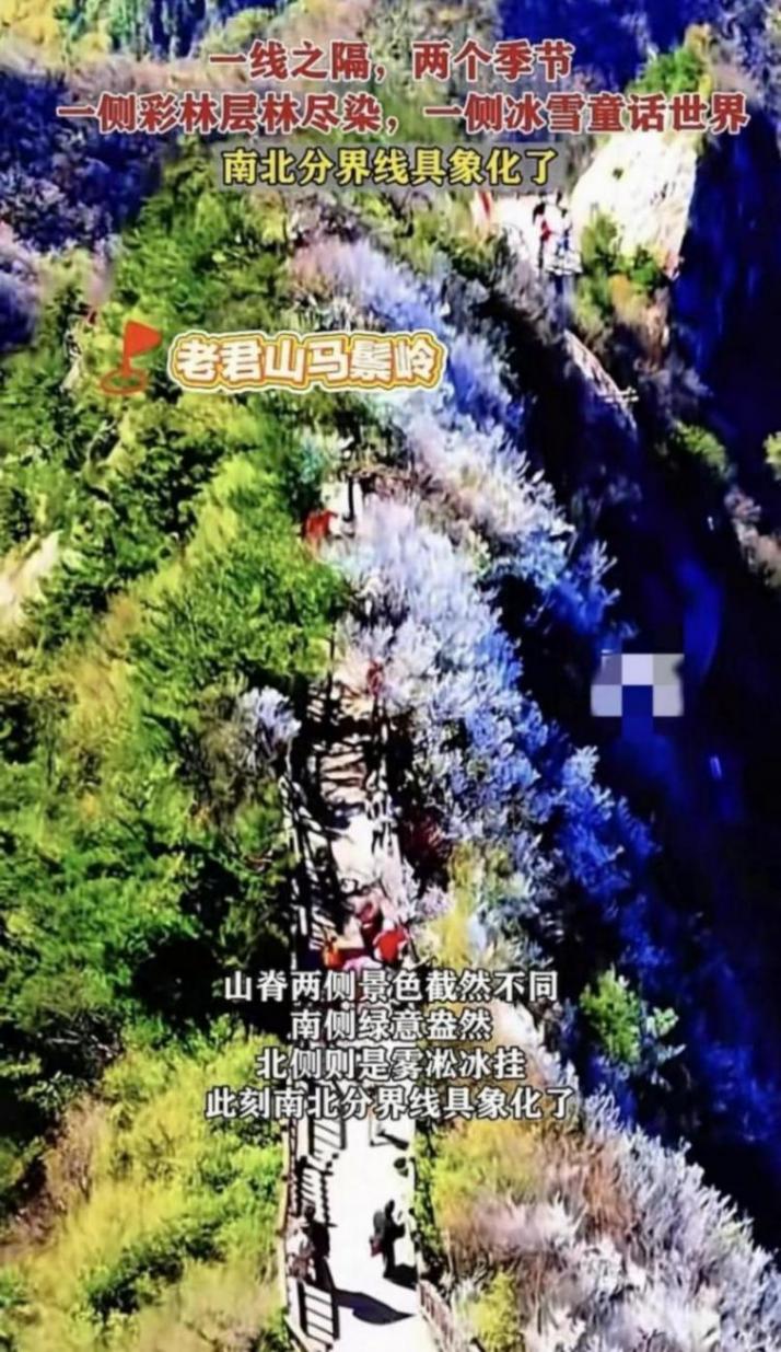 對于游客來說,來這兒玩就跟拆盲盒似的,走一步可能就從“春天”跨到“冬天”了,拍照發朋友圈絕對能收獲一堆羨慕的評論。而且這地方還不用跑太遠,就在老君山,順路就能去瞅瞅這神奇的一米之隔兩季節的景觀。