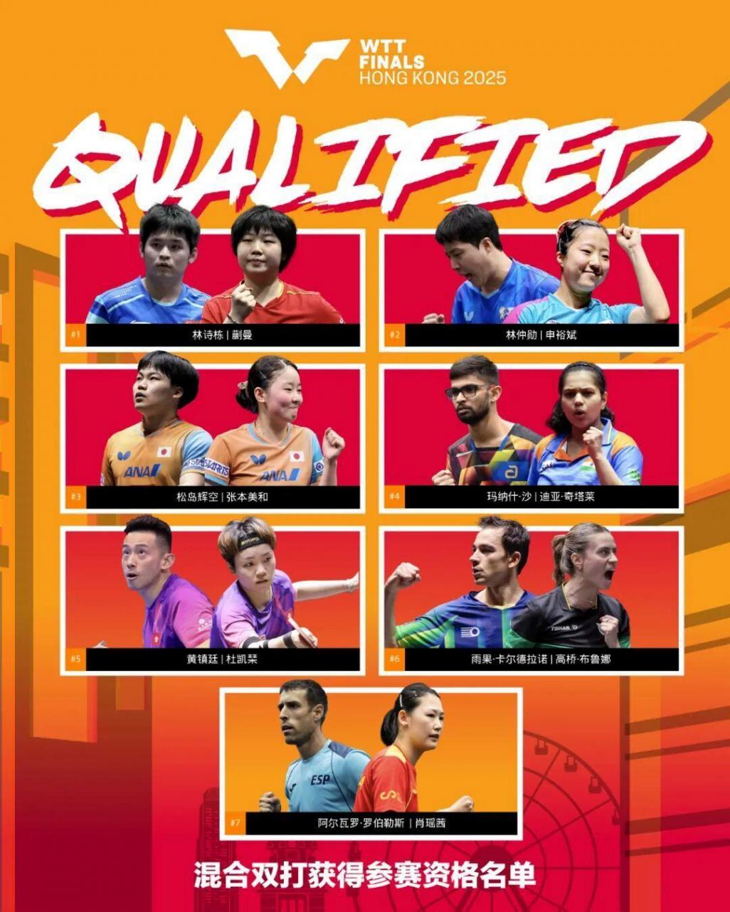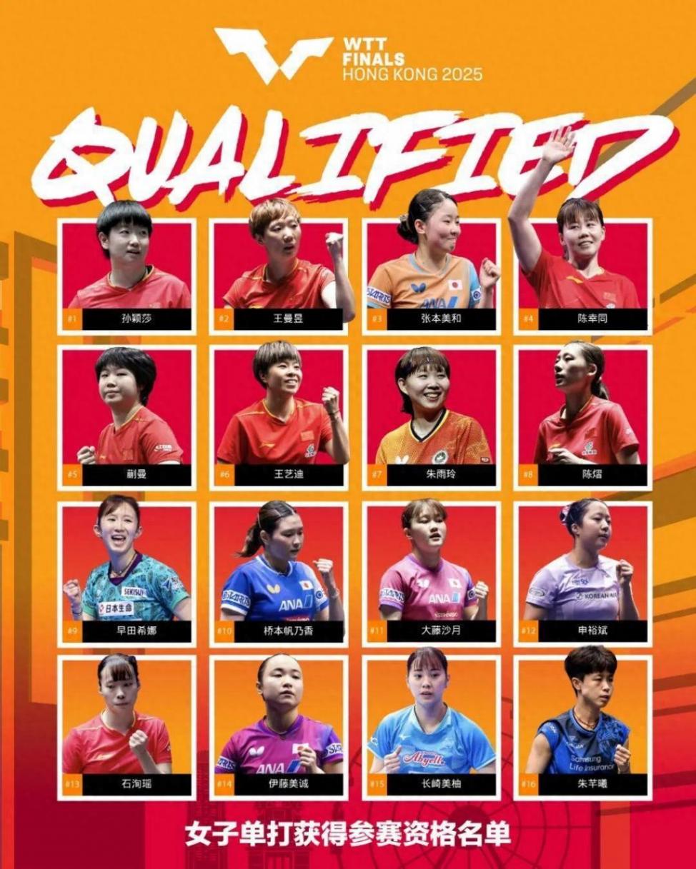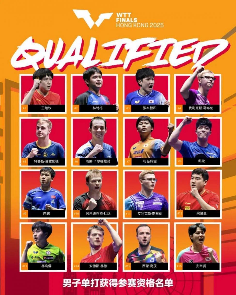 WTT香港總決賽2025將于12月10日至14日在中國香港紅磡體育館舉行。隨著WTT球星挑戰賽馬斯喀特站結束,獲得男女單打參賽資格名單已經確定,混雙也僅剩外卡名額尚待公布。來看具體參賽資格名單。